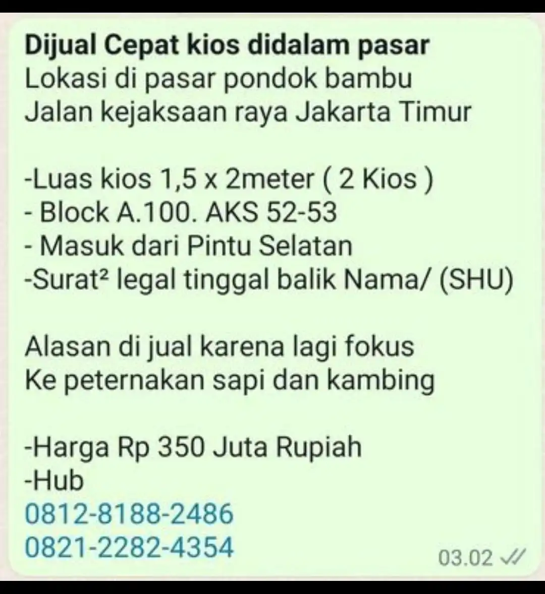 DiJual Cepat kios didalam pasar