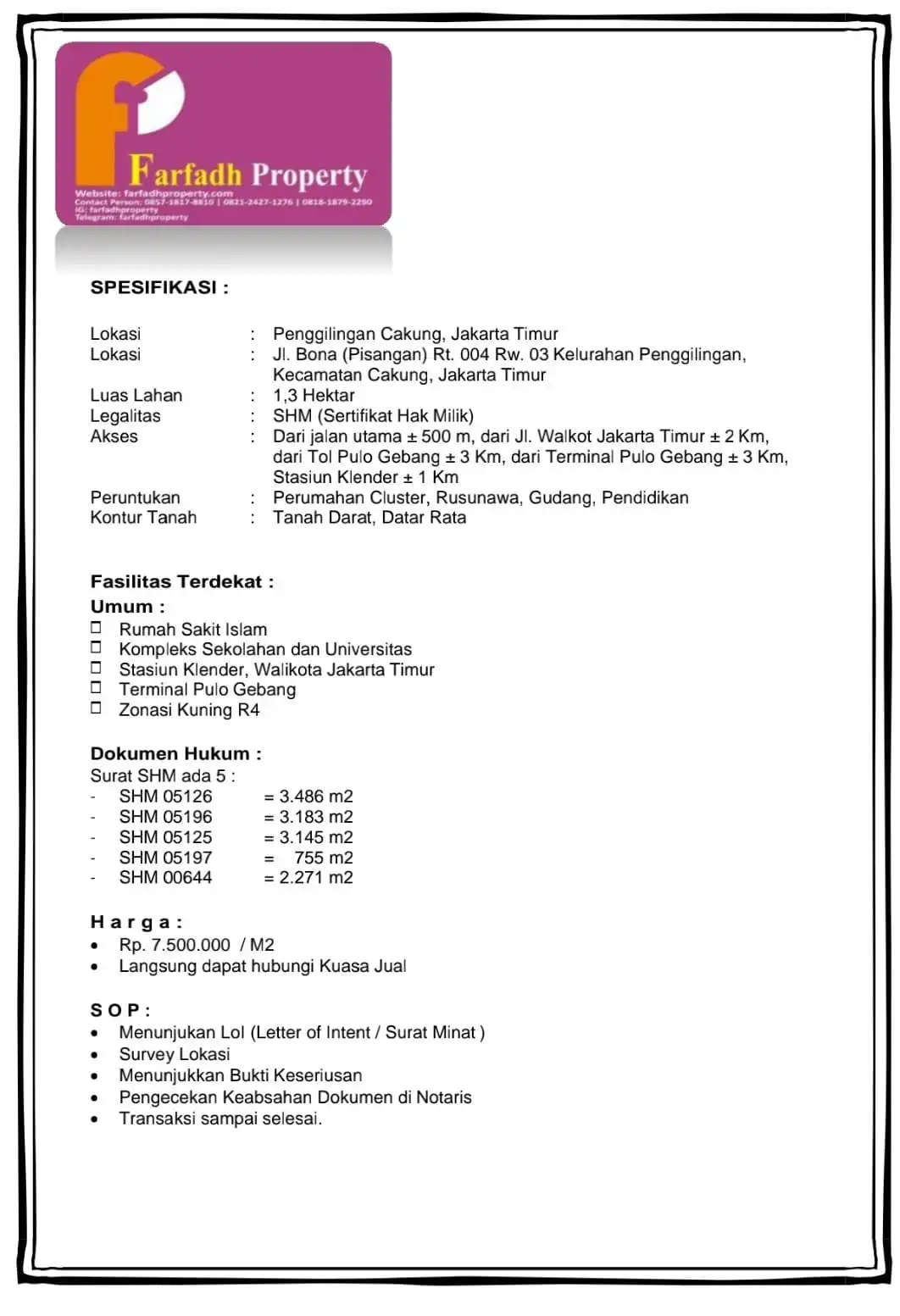 - Dari TERMINAL Pulo Gebang ± 3 km