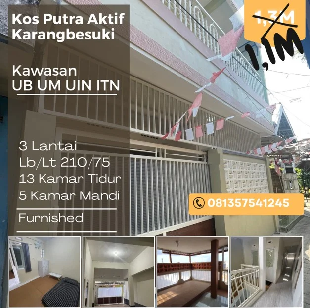 Income 110jt an/tahun. Kos aktif ada anak kos Full, perabot lengkap. Kawasan sigura-gura dekat kampus UB, Unisma, UIN, ITN, Uniga, kawasan kuliner