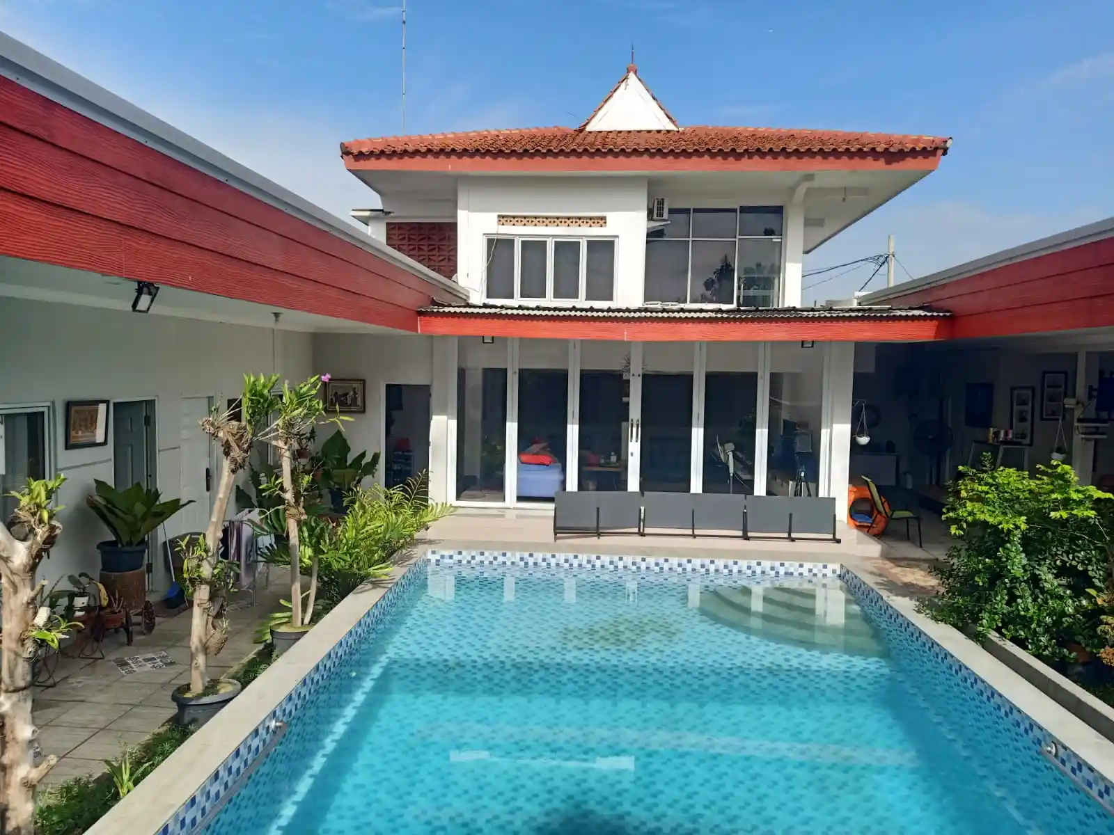 Kolam renang : lebar 5 meter, panjang 10 meter, kedalaman 1.5-2 meter, pompa kolam renang 1 PK.