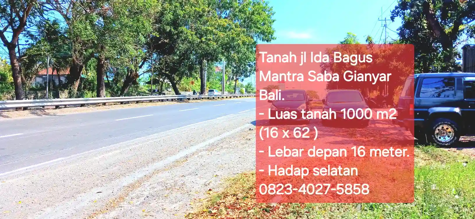Dijual tanah 10 are jl Ida Bagus Mantra Saba Gianyar Bali