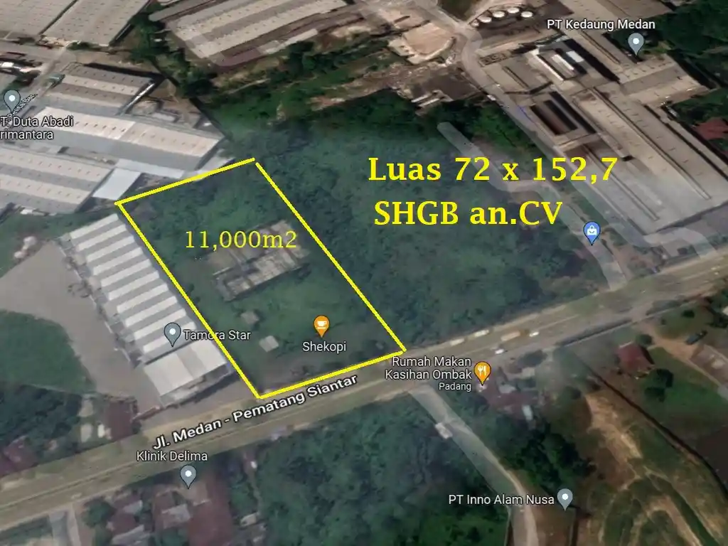 Dijual Tanah luas 11.000 m² dipinggir jalan Jl. Medan - Pematang Siantar