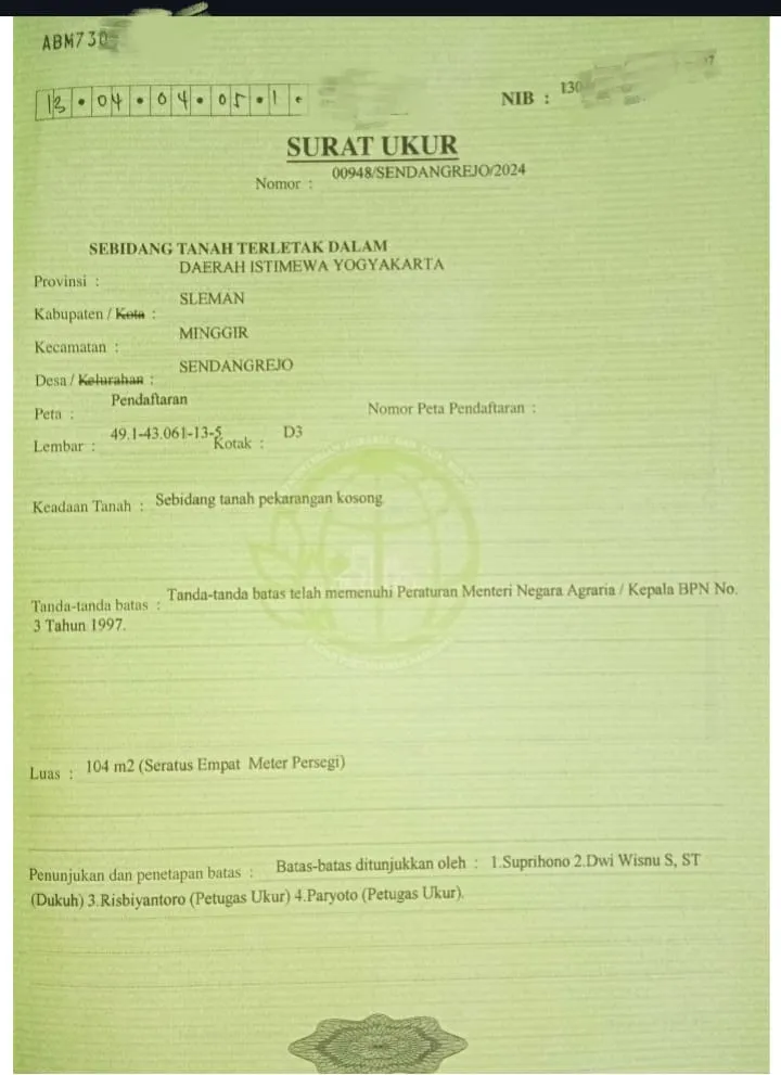 Luas tanah : 104 m
