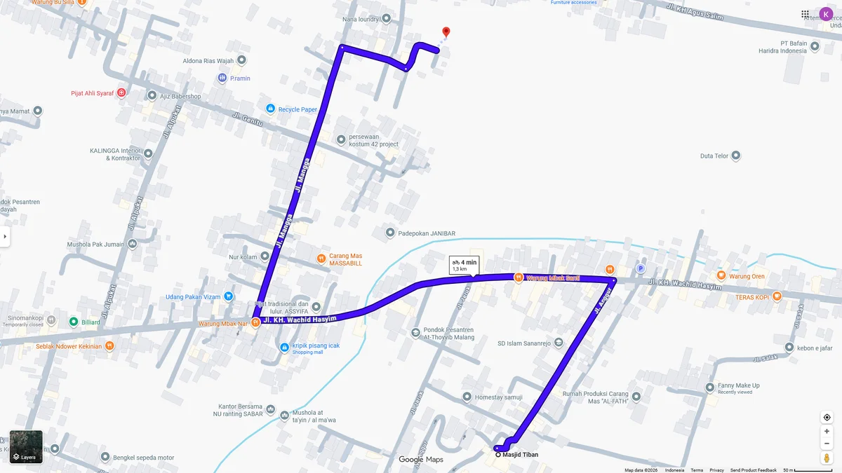 ● 4 menit dari pusat wisata religi Masjid Tiban ramai pengunjung.