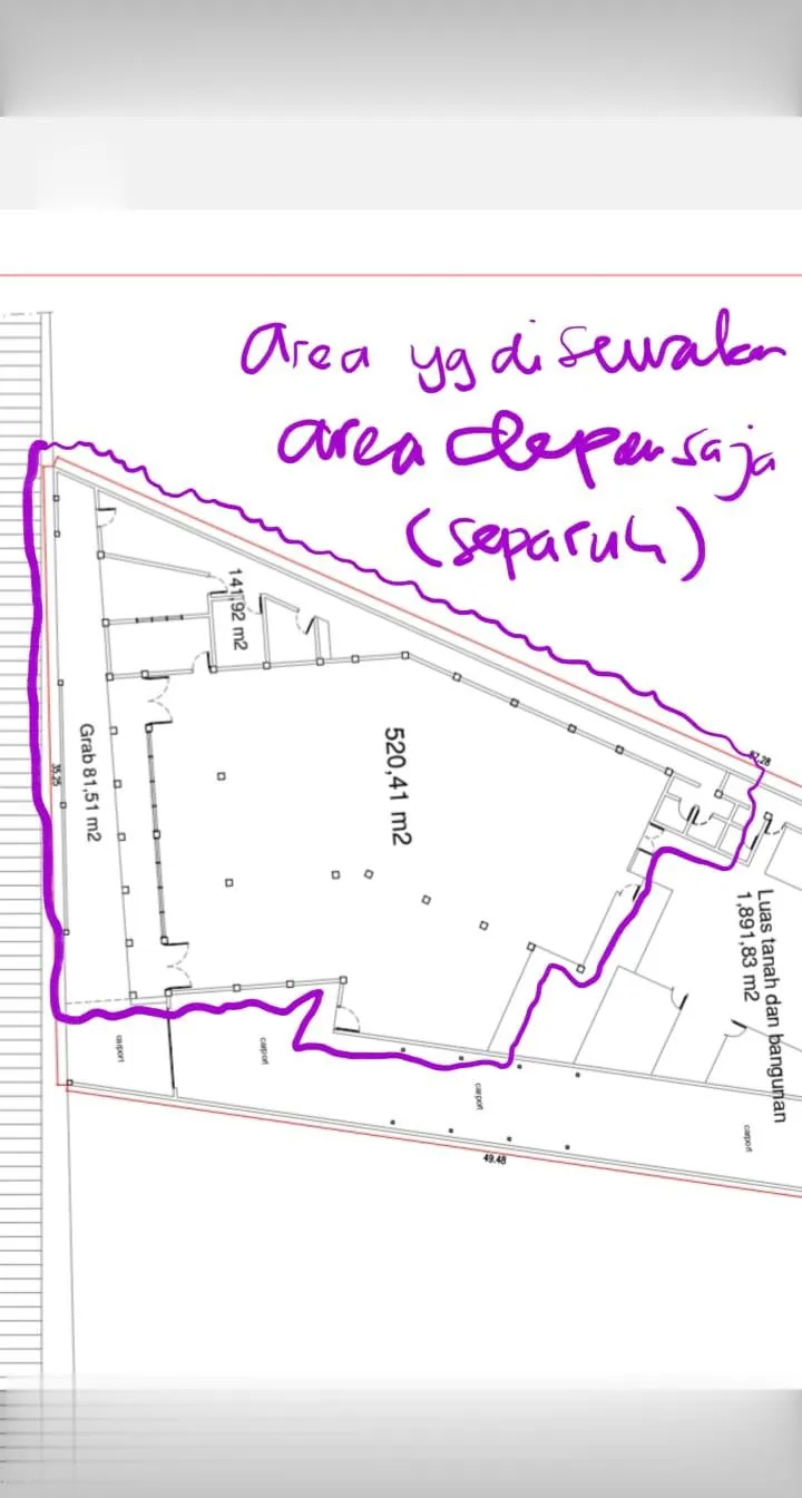 Disewakan Gedung 1 lantai 520m2 x showroom di area Mampang, Jakarta Selatan
