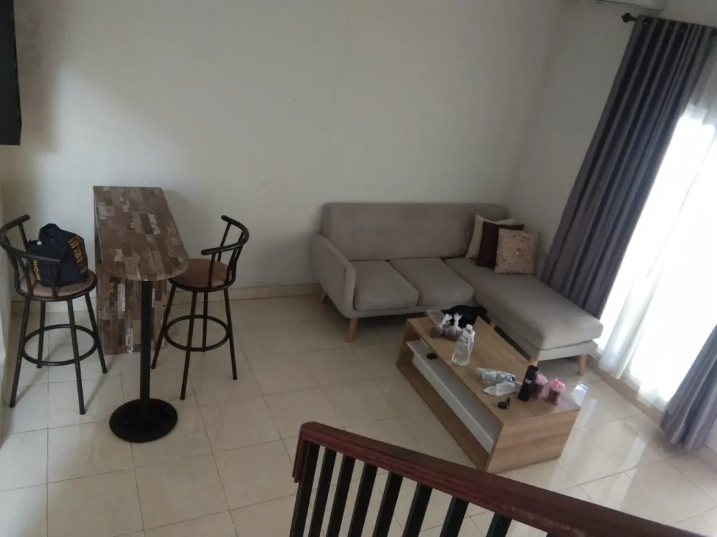 List Furnish: AC 3 unit, Kulkas 2 pintu, TV 2 unit, kompor stand Modena + oven, meja makan, mesin cuci LG front door, queen bed 2 unit plus seprei, sofa, meja bar, kolam ikan, meja bar, kitchen set, pompa air dan perlengkapan dapur lainnya (termasuk piring sendok)