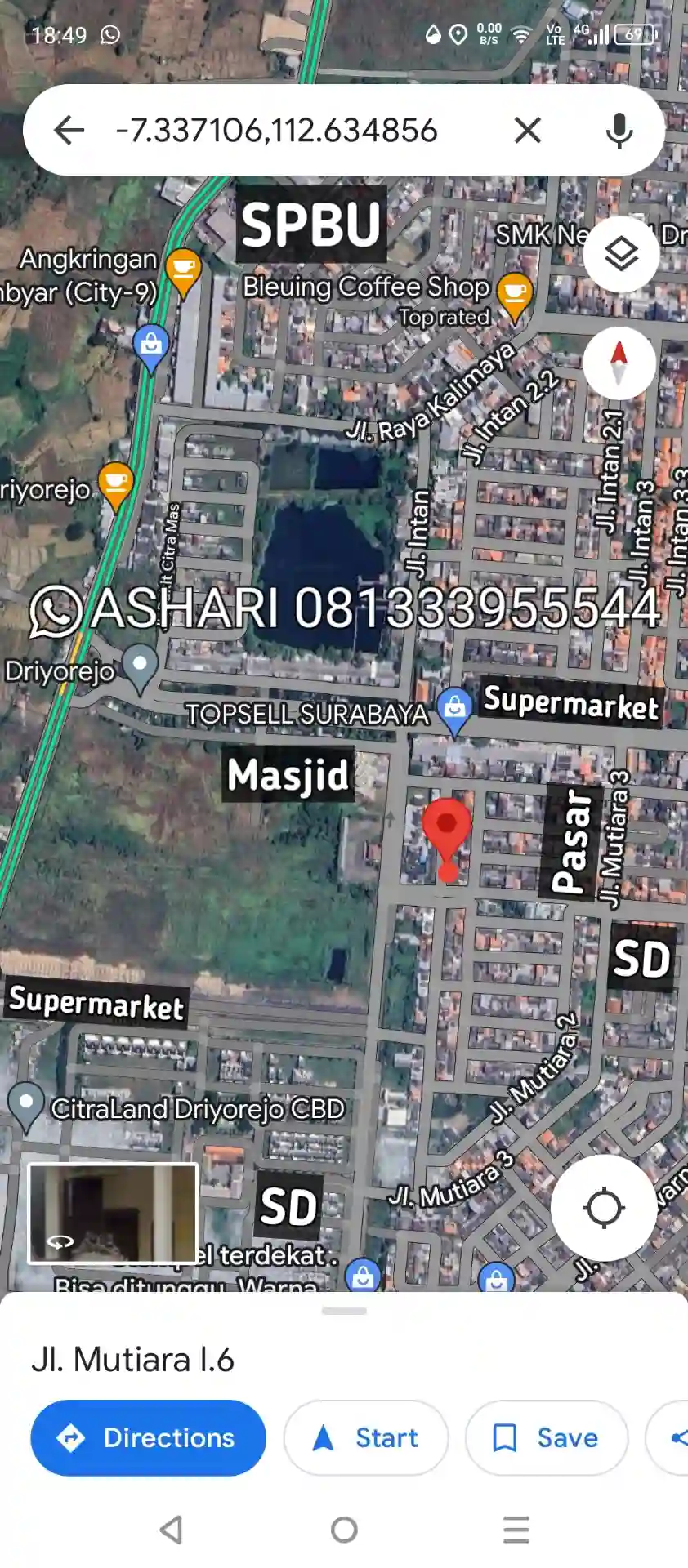Jalan Mutiara 1.6 Perumnas Kota Baru Driyorejo Gresik