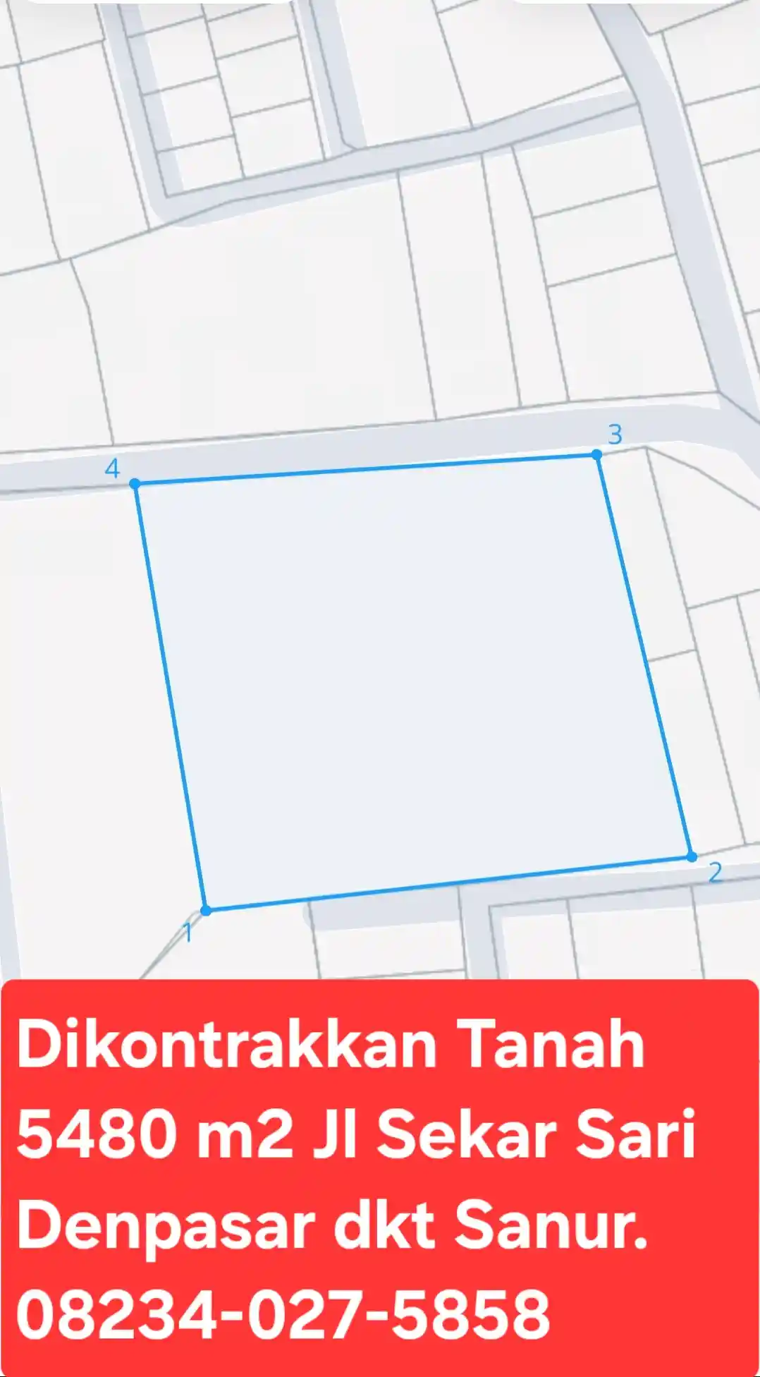 Disewakan Tanah 5480 m2 Jl Sekar Sari Dkt Renon,Sanur Denpasar Bali