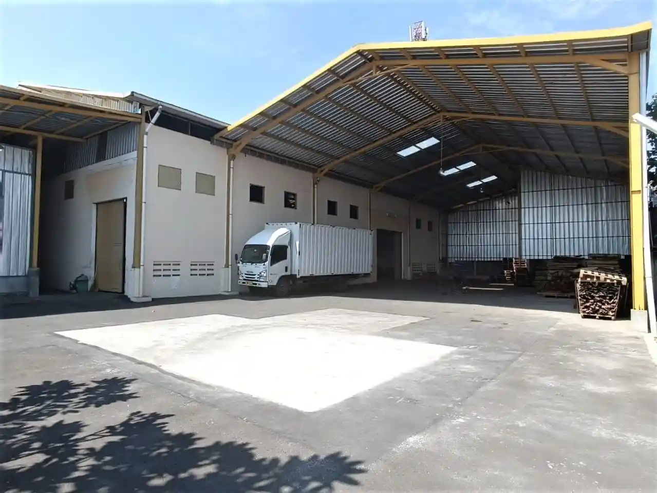 ~ Tinggi tembok samping 7 meter dan tinggi atap tengah Gudang 10 meter