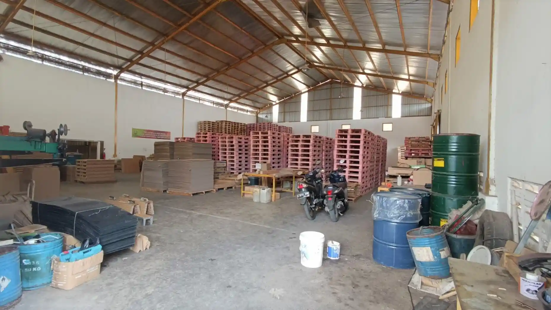 ~ Tinggi tembok samping 7 meter dan tinggi atap tengah Gudang 10 meter