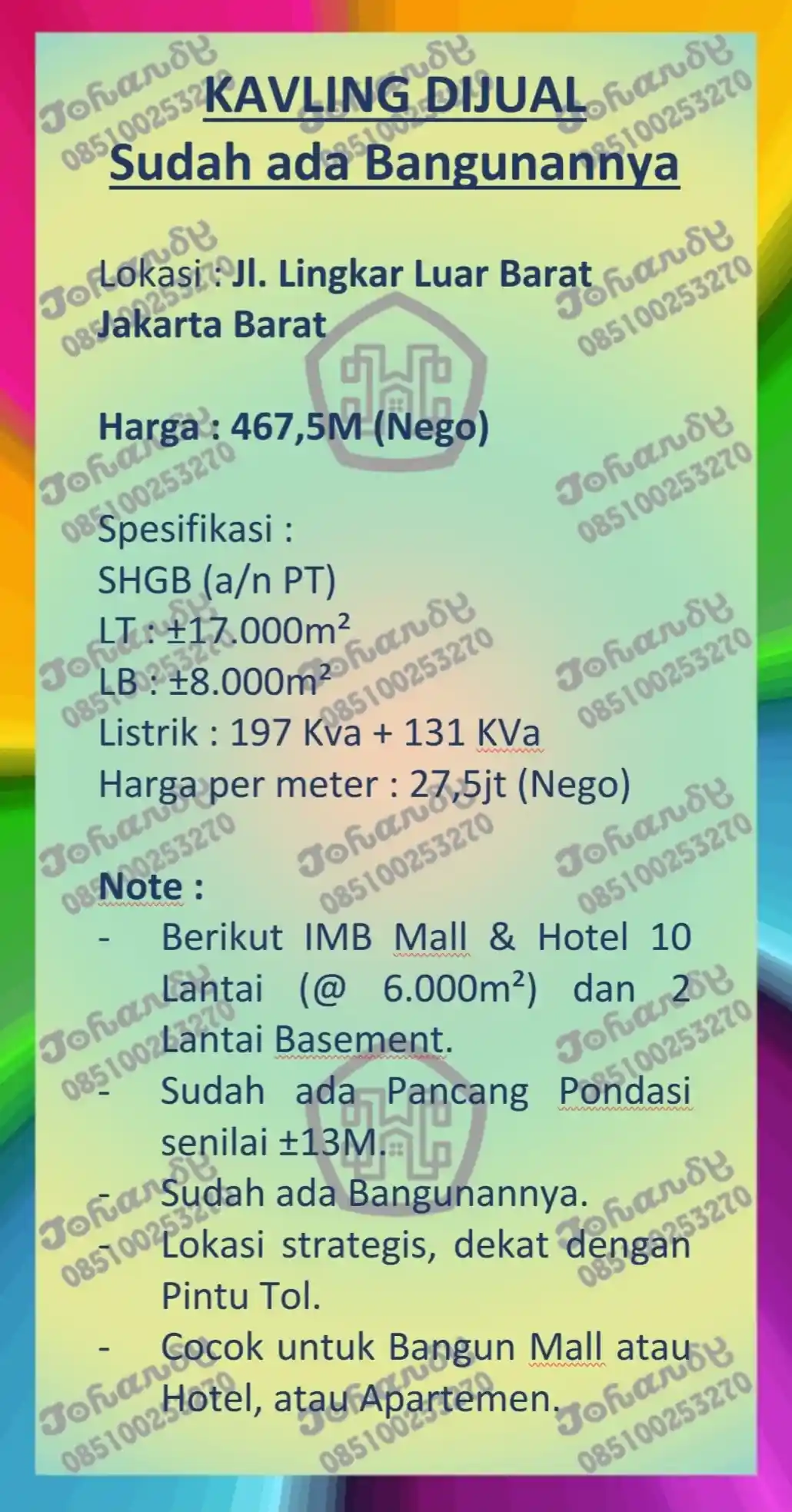 Gudang + Tanah di Jual di Lingkar Luar Barat - Cengkareng - Jakarta Barat