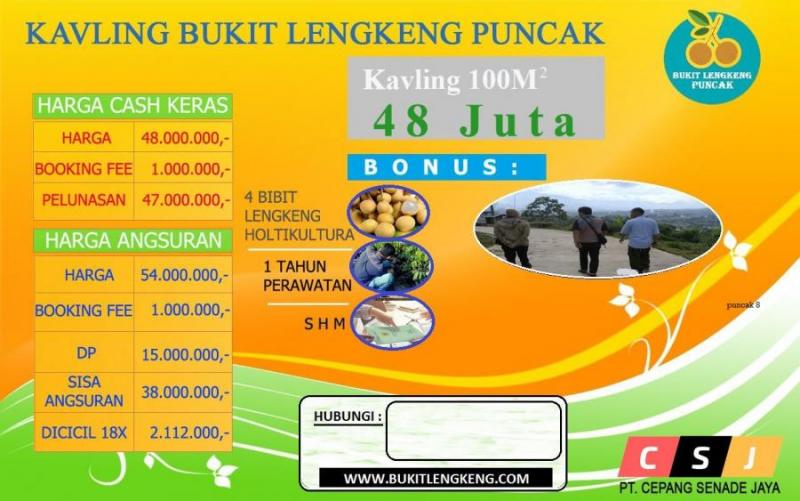 Bukit Lengkeng Puncak menyediakan Kavling dengan luas 100M² harga 50 Juta.