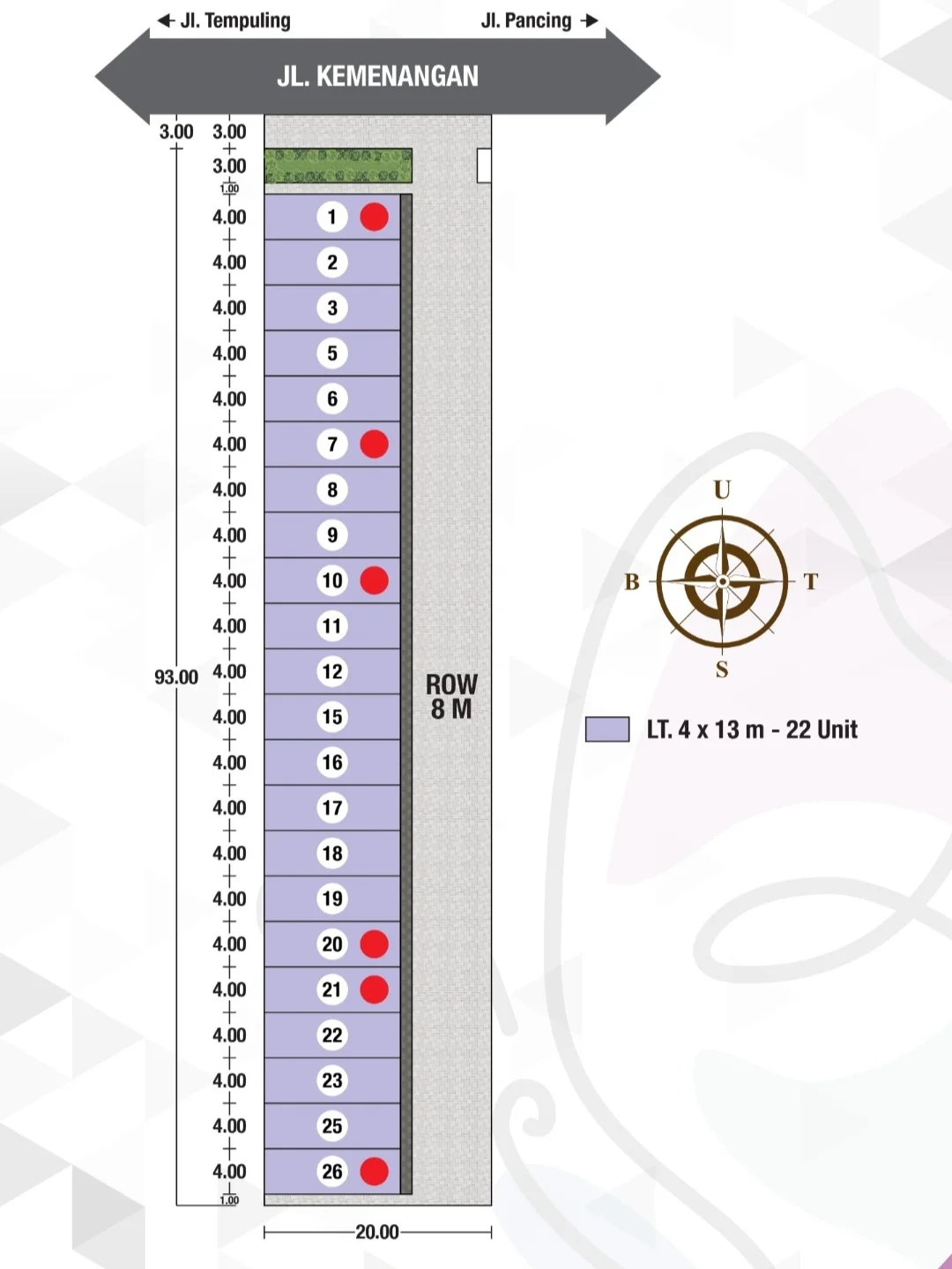 Luas Tanah : 4 x 13 m²
