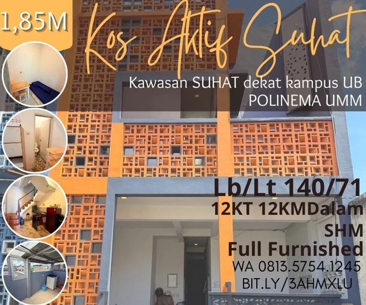 Kos Aktif dijual di Malang 12KT+13KMD Furnished SUHAT UB POLINEMA 1,85M