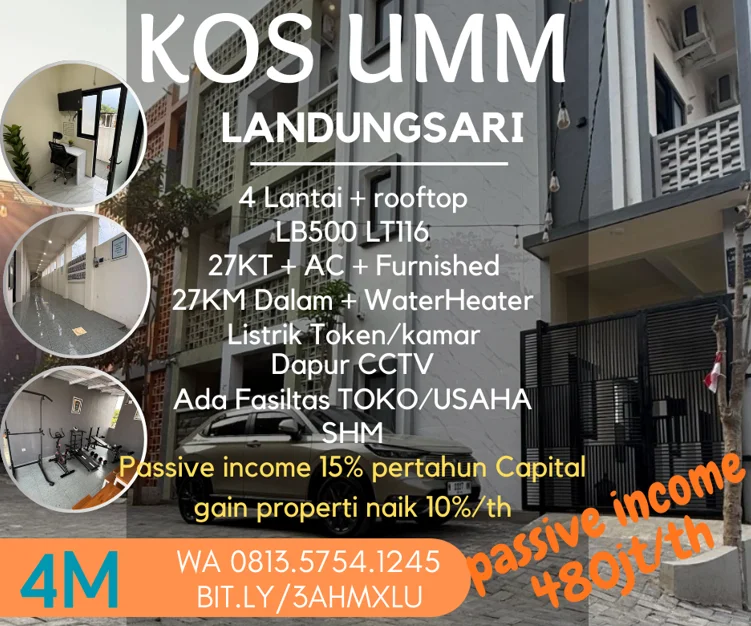 Kos Aktif income480jt/th dijual 27KT 27KMDalam kampus UMM UIN UNISMA Furnished