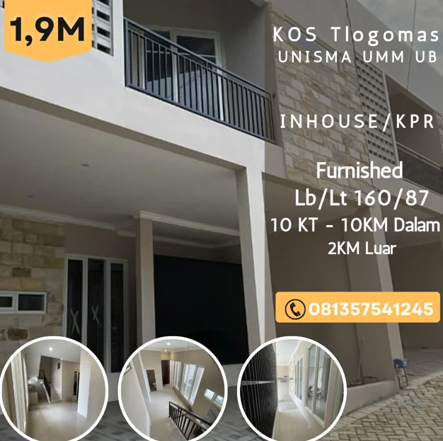 Kos dijual di tlogomas dekat UB UNISMA UNITRI 10KT 10KMDalam Furnish 1,9M Inhouse/KPR PI180jt/th