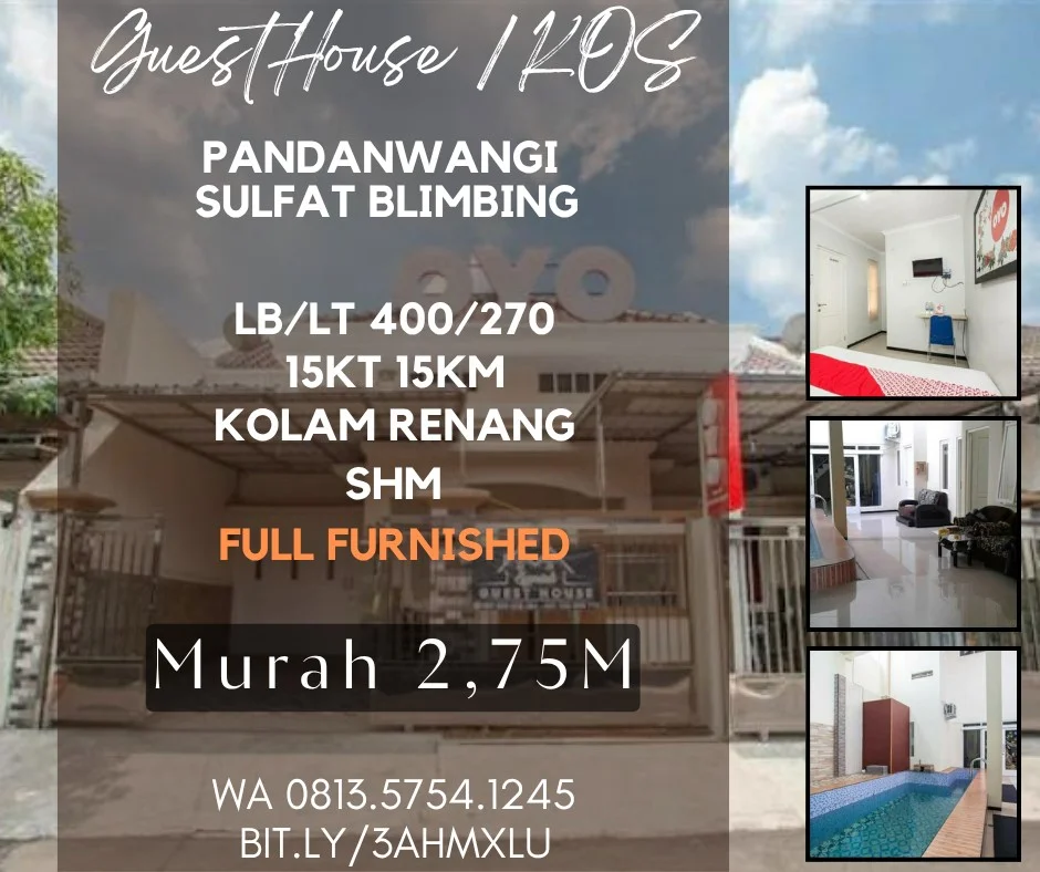 Kos Guesthouse dijual sulfat purwantoro 15KT+15Kmd+kolam renang 2,75M