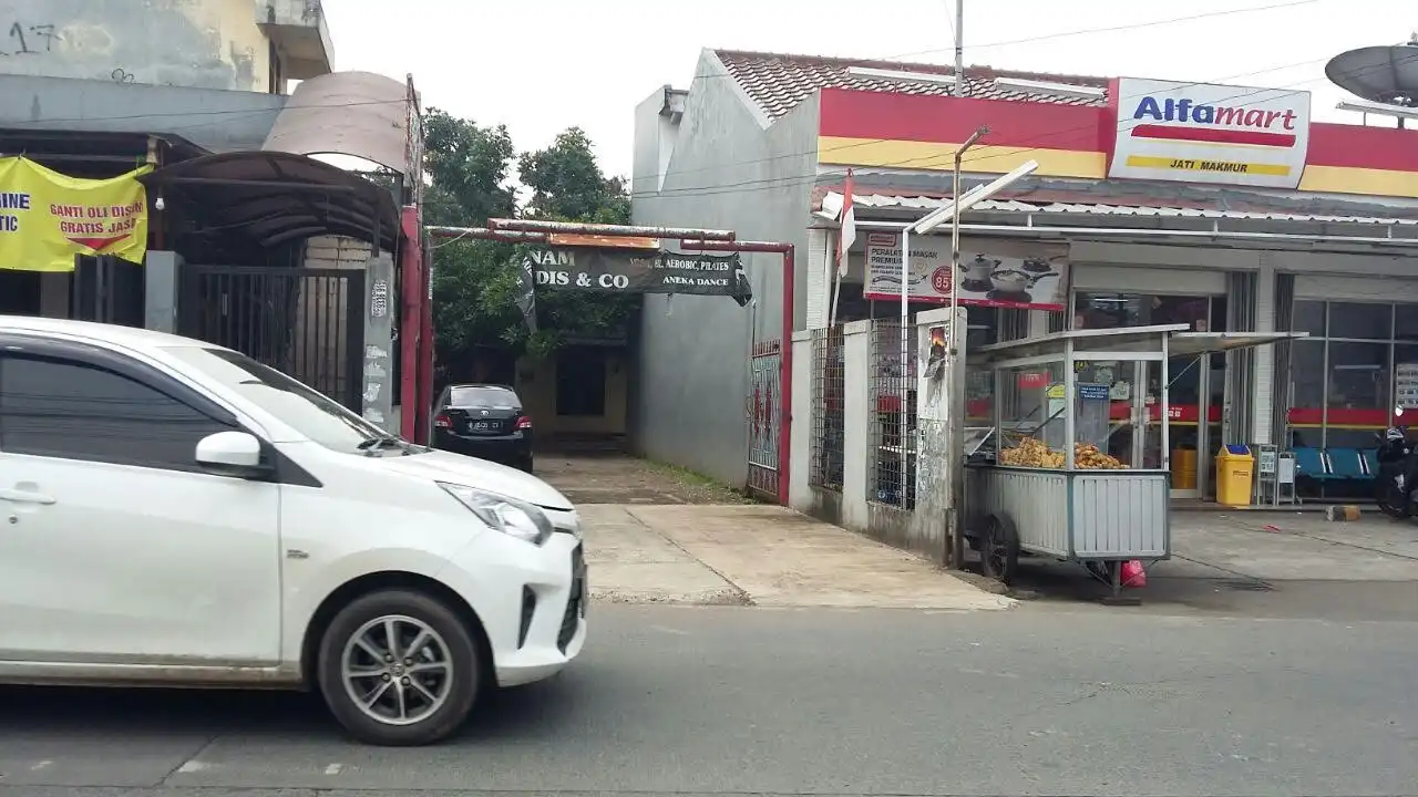 Parkir luas untuk mobil dan motor. Ada cctv. Pinggir jalan raya. Ada Alfamart di depan.