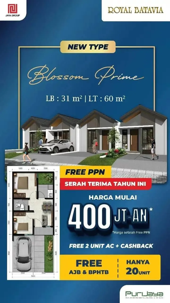 Miliki hunian eksklusif di Tangerang, harga mulai 400 jutaan sudah dilengkapi dengan smart home system, DP hanya 10 %, cicilai 12x. Nikmati fasilitas kawasan yang premium dan kemudahan tinggal di Royal Batavia sekarang juga!
