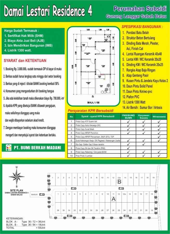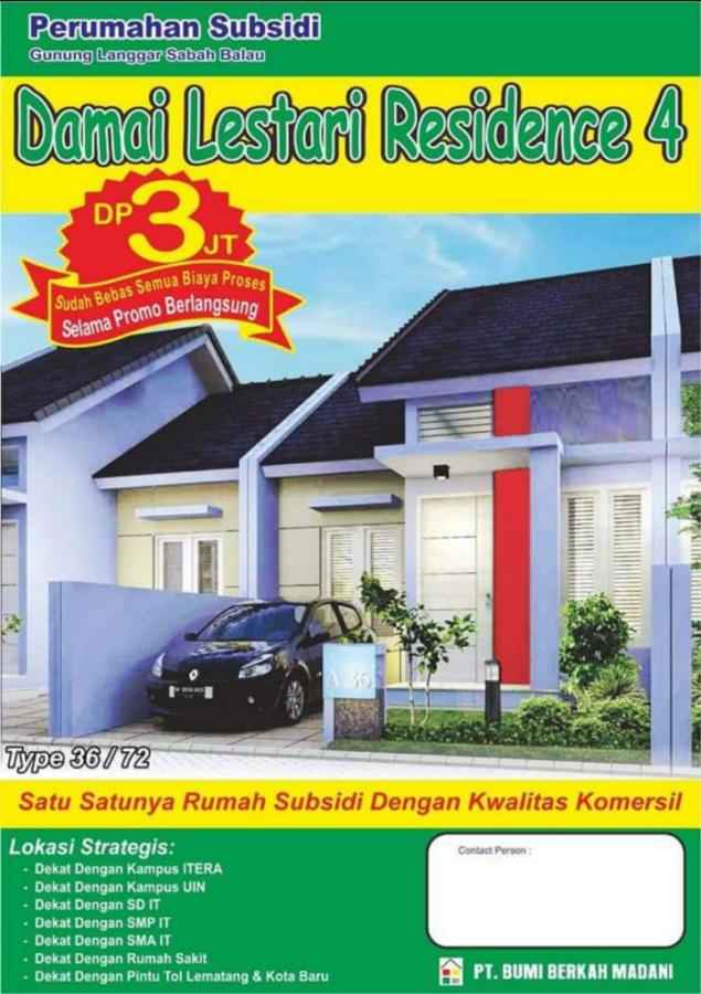 Telah Launching Perumahan Subsidi dg Lokasi yg sangat strategis, terletak di area lingkungan padat penduduk Gunung Langgar Sabah Balau Lampung Selatan
