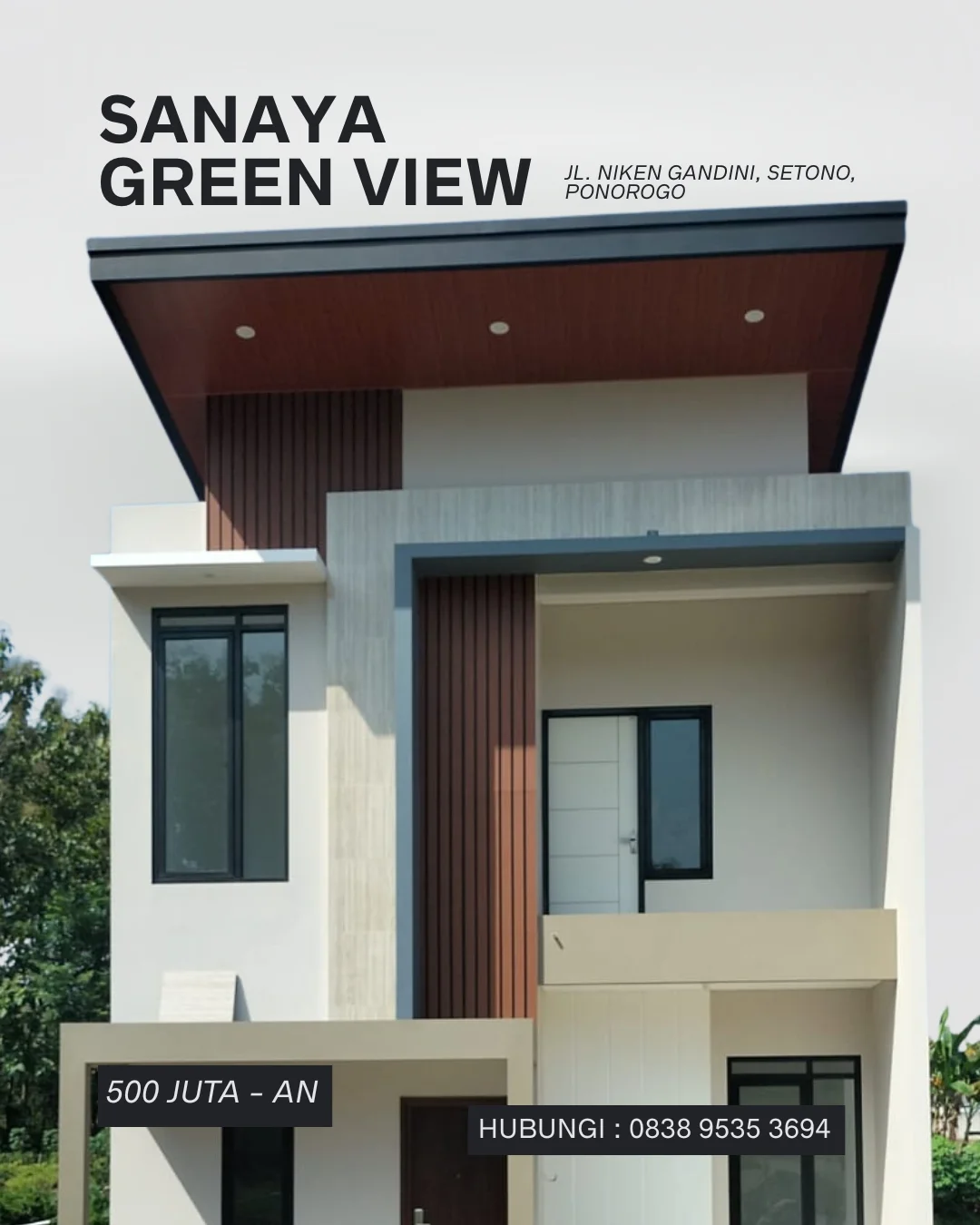 Selamat datang di SANAYA GREEN VIEW, hunian eksklusif yang dirancang untuk menghadirkan kenyamanan dan kualitas hidup terbaik bagi Anda dan keluarga. Berlokasi di Jalan Niken Gandini, Setono, Ponorogo, perumahan ini berada di area yang tenang namun tetap dekat dengan pusat aktivitas kota, menjadikannya pilihan ideal bagi keluarga modern yang mendambakan keseimbangan antara ketenangan dan kemudahan akses.