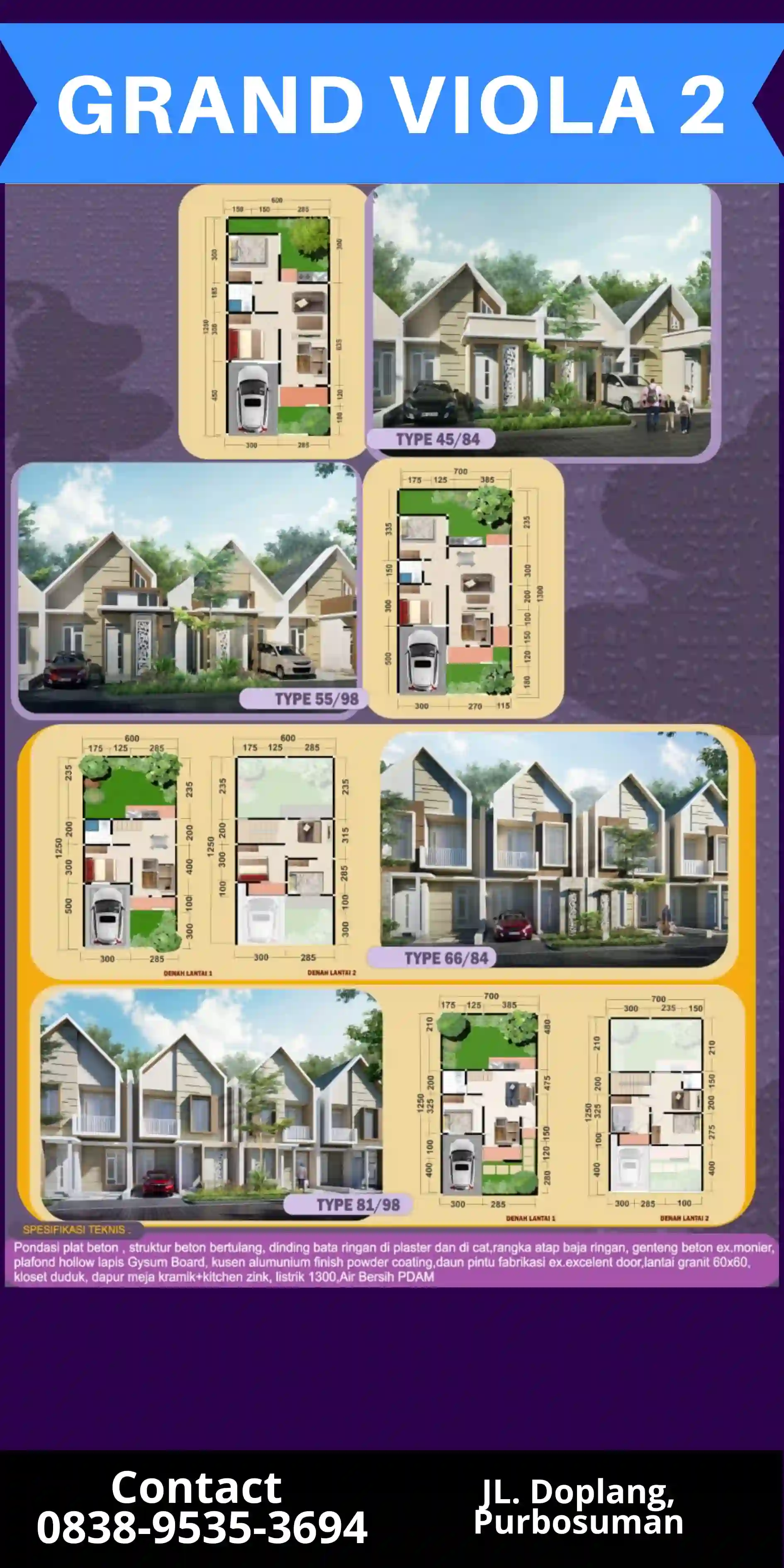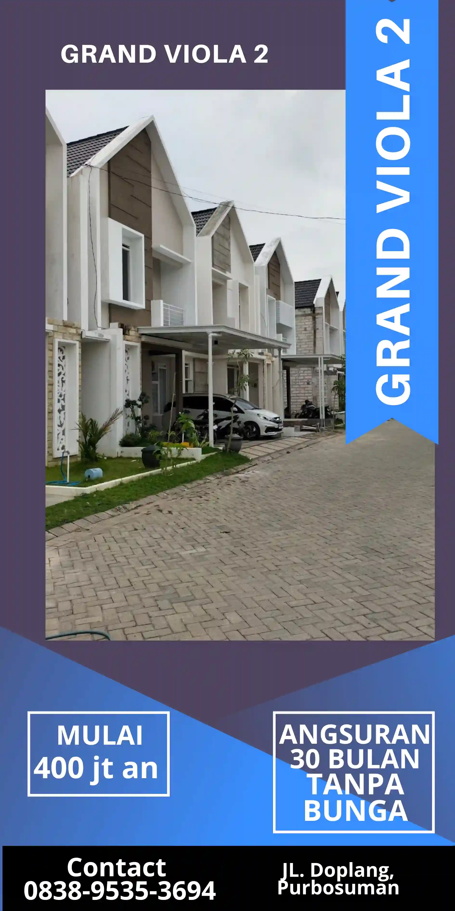 GRAND VIOLA 2 menawarkan hunian modern dengan akses mudah dan dekat dengan fasilitas pendidikan, kesehatan, dan perkantoran. Semua itu dengan harga terjangkau dan skema cicilan 30 bulan tanpa bunga, tanpa sita, dan tanpa bank.