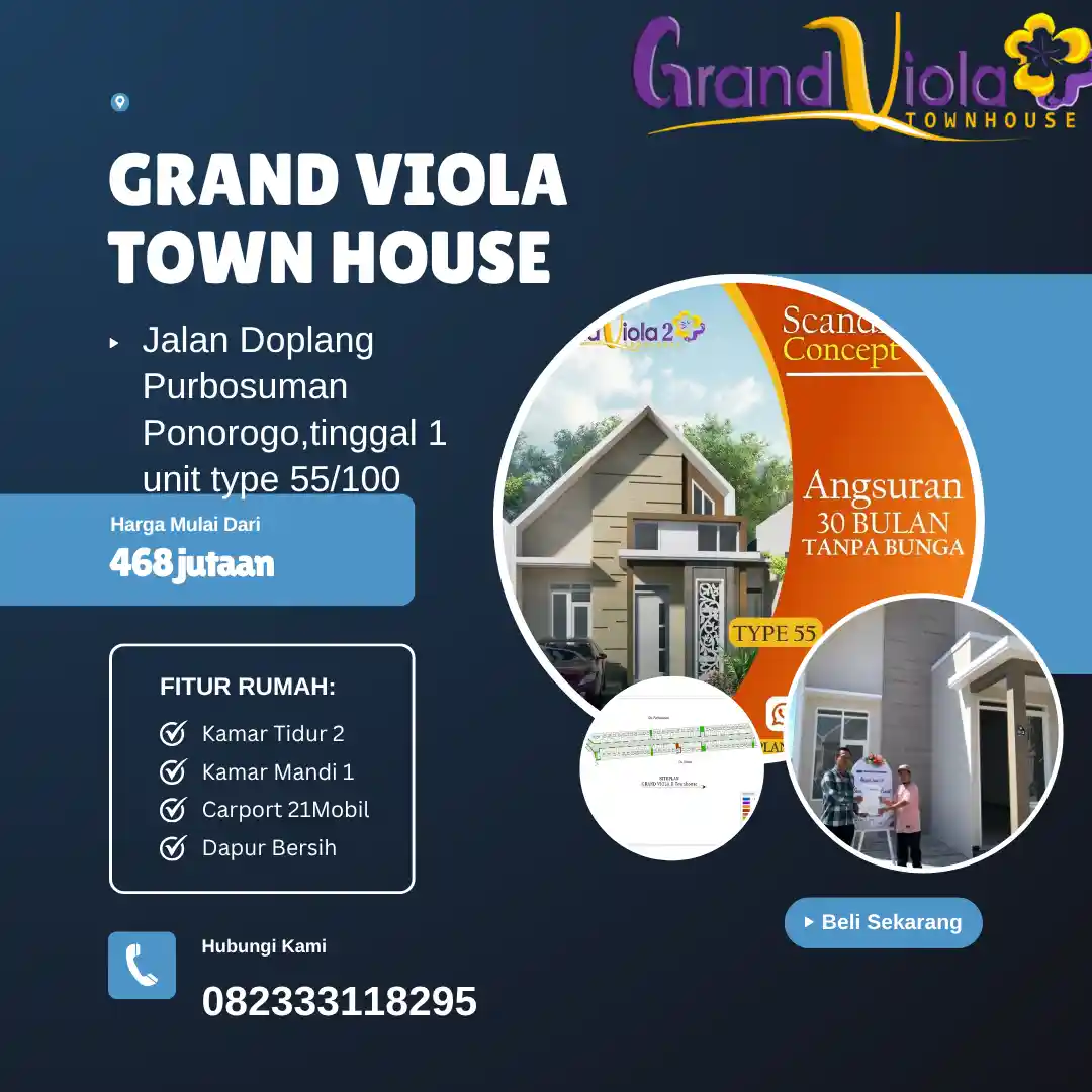 Perumahan Terlaris "GRAND VIOLA TOWN HOUSE 2" Lokasi Strategis dekat  Kota dan akses yang sangat mudah!