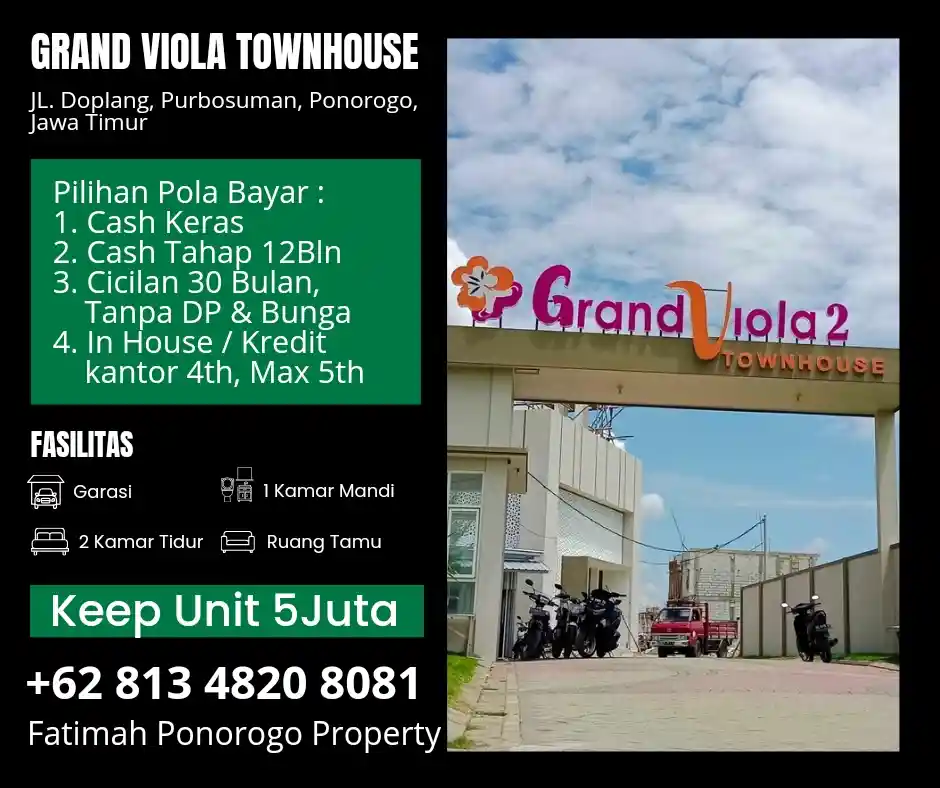 Grand Viola Townhouse yang berlokasi di Doplang, Purbosuman, Ponorogo, Jawa Timur.
