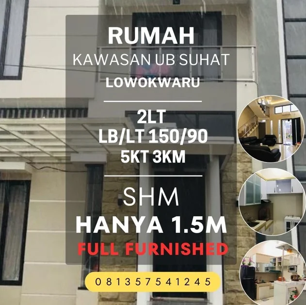 Rumah dijual di kawasan SUHAT borobudur UB 2lt 5KT Furnished St.Yusup sabillilah