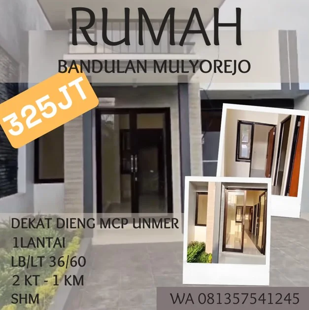 Rumah dijual di Malang 325jt bandulan mulyorejo kawasan dieng MCP UNMER