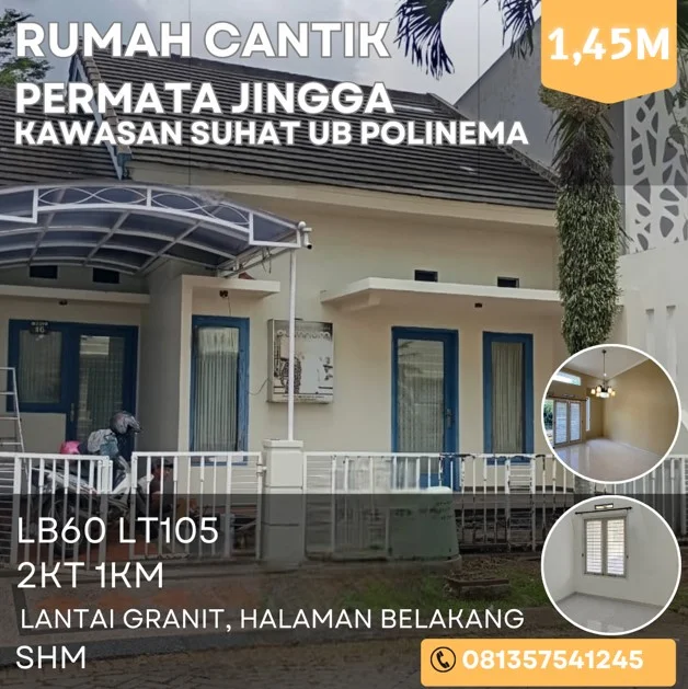 Rumah dijual di Malang Permata Jingga Lt105 1,45M kawasan SUHAT UB