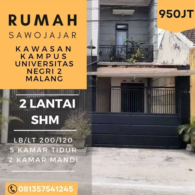 Rumah dijual di Sawojajar Malang 2Lt 5KT dekat UM2 Stiba exit Tol