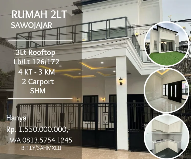 Rumah dijual di sawojajar pandanwangi STIBA Tol 4KT 3KM rooftop 1,55M