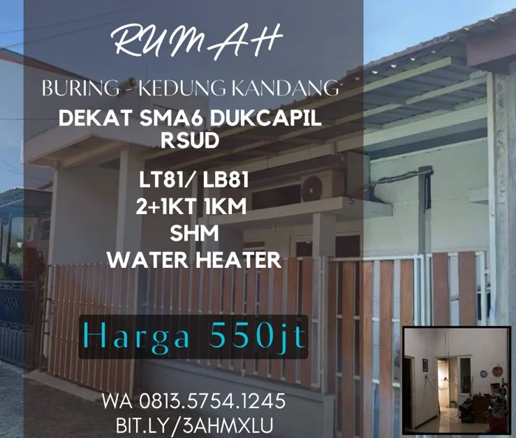 Rumah dijual kedungkandang Buring bumiayu 3Kamar 550jt Dukcapil RSUD