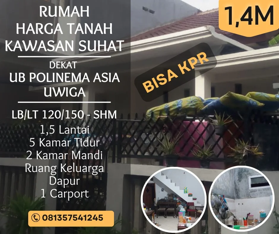 Rumah dijual Malang 5KT kawasan borobudur suhat UB ABM Polinema 1,4M