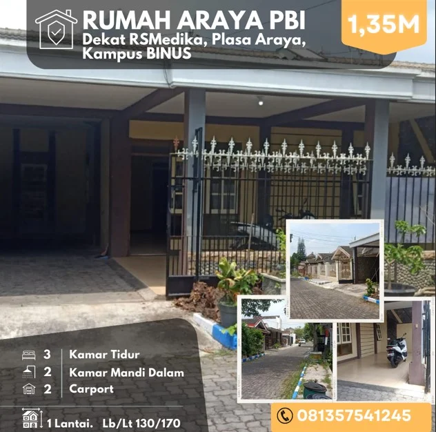 Rumah harga tanah dijual Araya dekat BINUS Plasa RSMedika lt170 1,35M