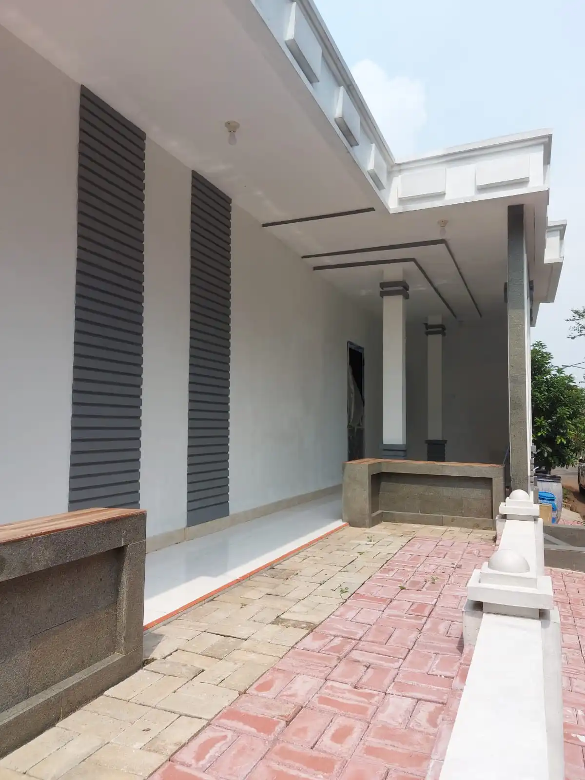 - Carport untuk 1 mobil dengan atap dak dan lantai batu alam andesit
