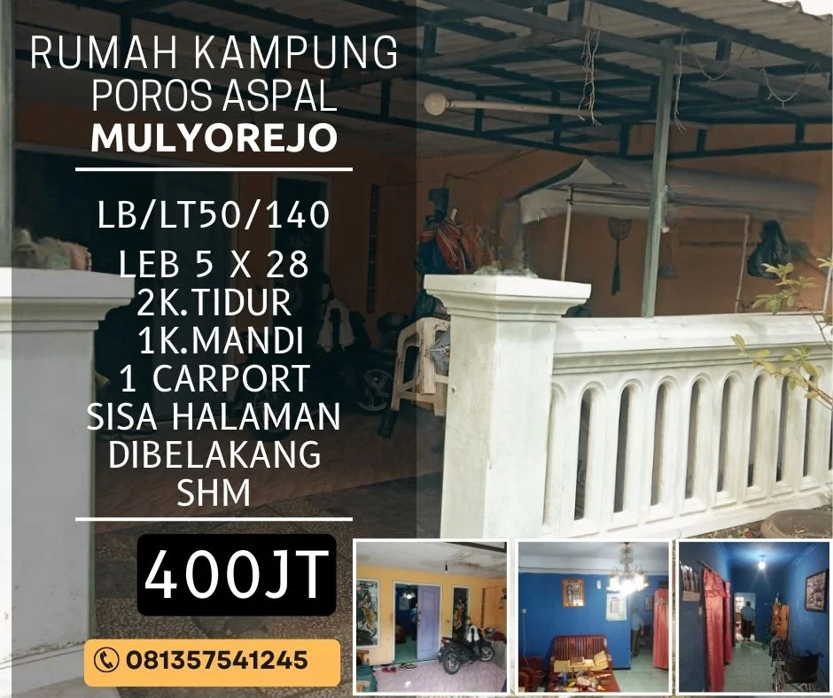 Rumah kampung dijual di mulyorejo bandulan poros aspal hanya 400jt