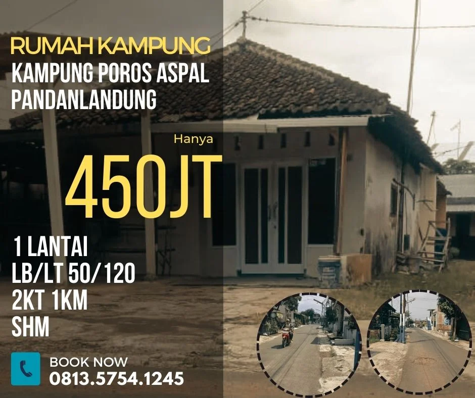 Rumah kampung dijual di pandanlandung bandulan poros aspal hanya 450jt