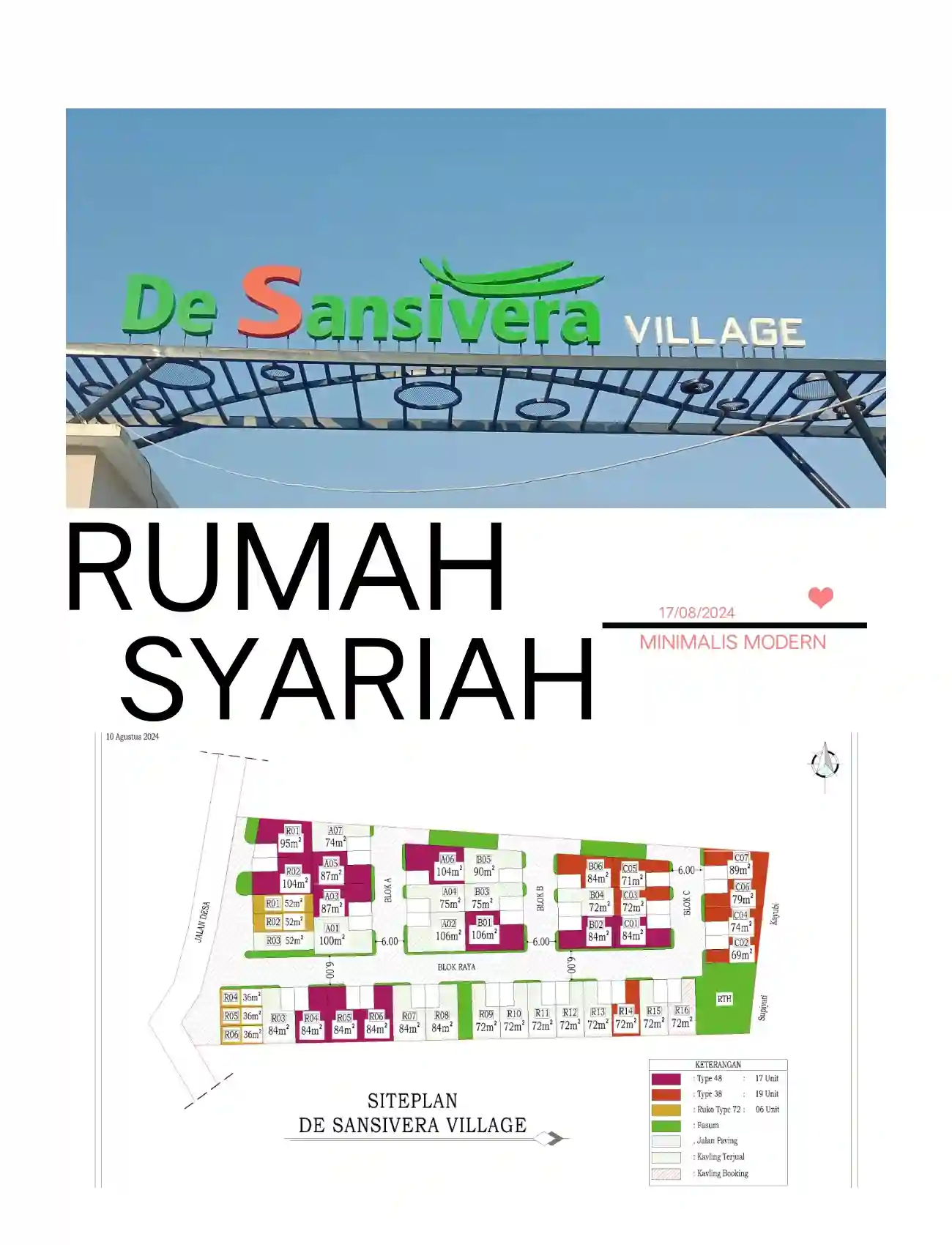 Tempat tinggal yang berkualitas tidak hanya sekedar harga tapi lingkungan dan pola bayar yang tidak memberatkan sesuai dengan kebutuhan. Hunian Dengan konsep Modern, Minimalis dan Syariah. Di tambah pilihan pola bayar yang *ISTIMEWA* yakni *CICILAN 30 BULAN, TANPA DP DAN BUNGA*
