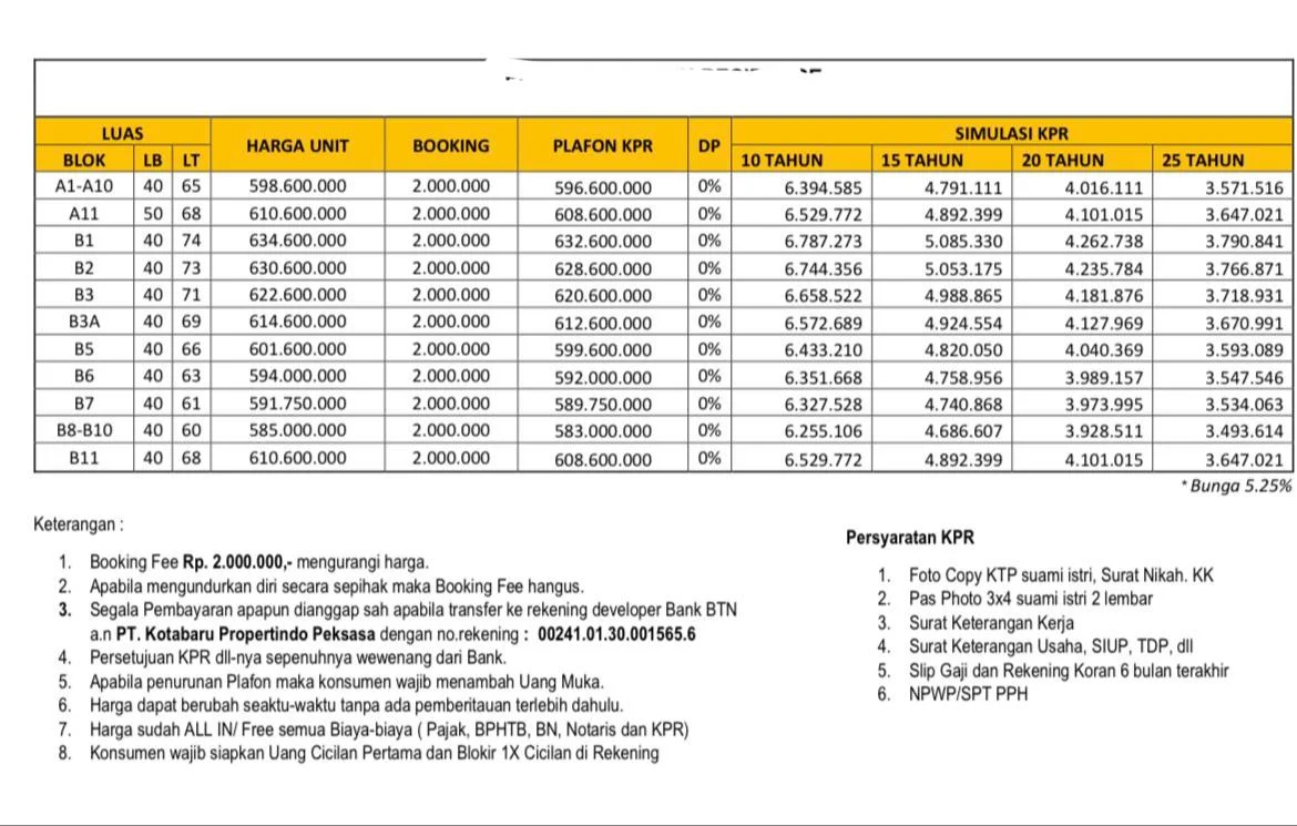 * Luas Bangunan 40 m² Luas Tanah mulai 60-74 m²