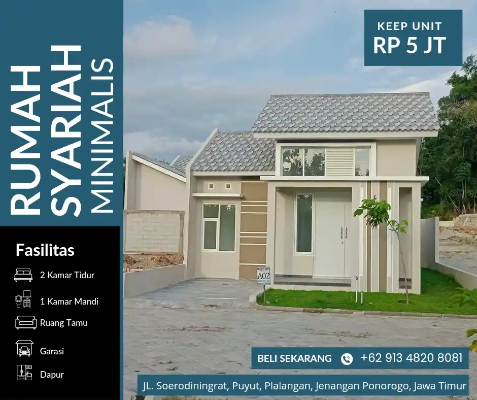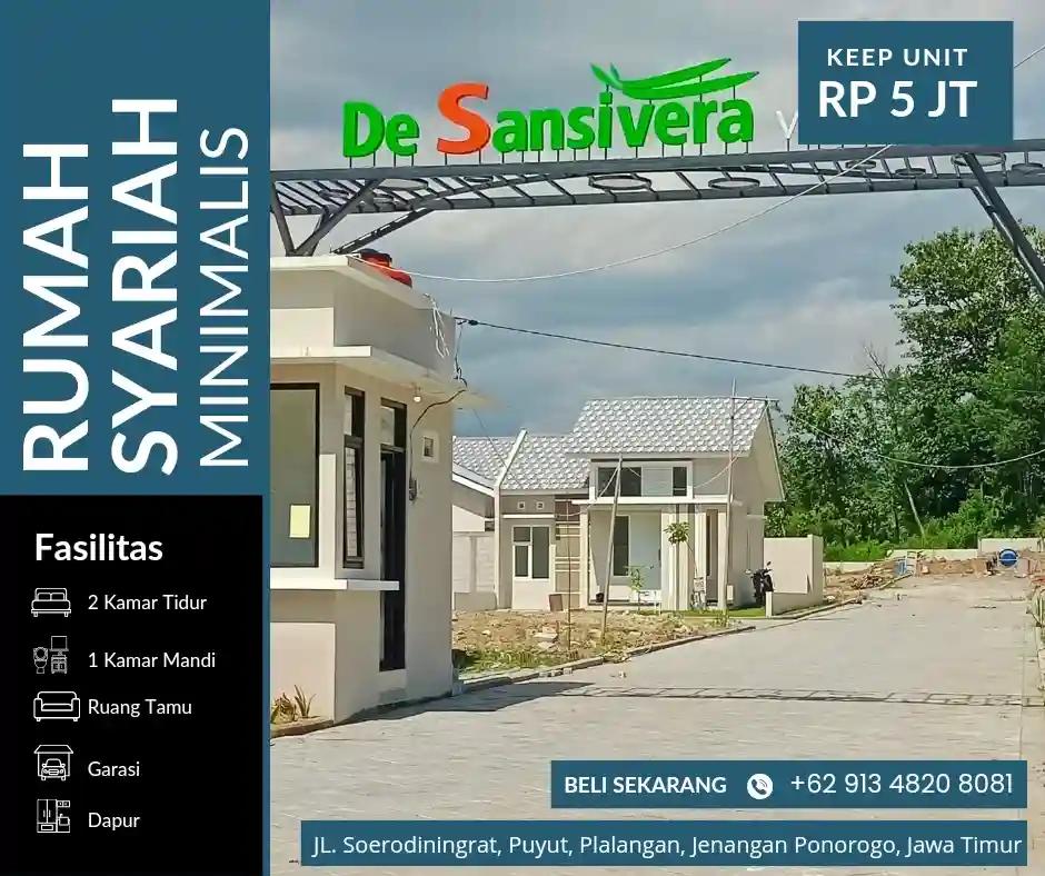 Hunian Syariah dengan konsep modern minimalis D'Sansivera Village yang berlokasi di pertigaan Soerodiningrat, Puyut, Plalangan, Jenangan, Ponorogo, Jawa Timur.