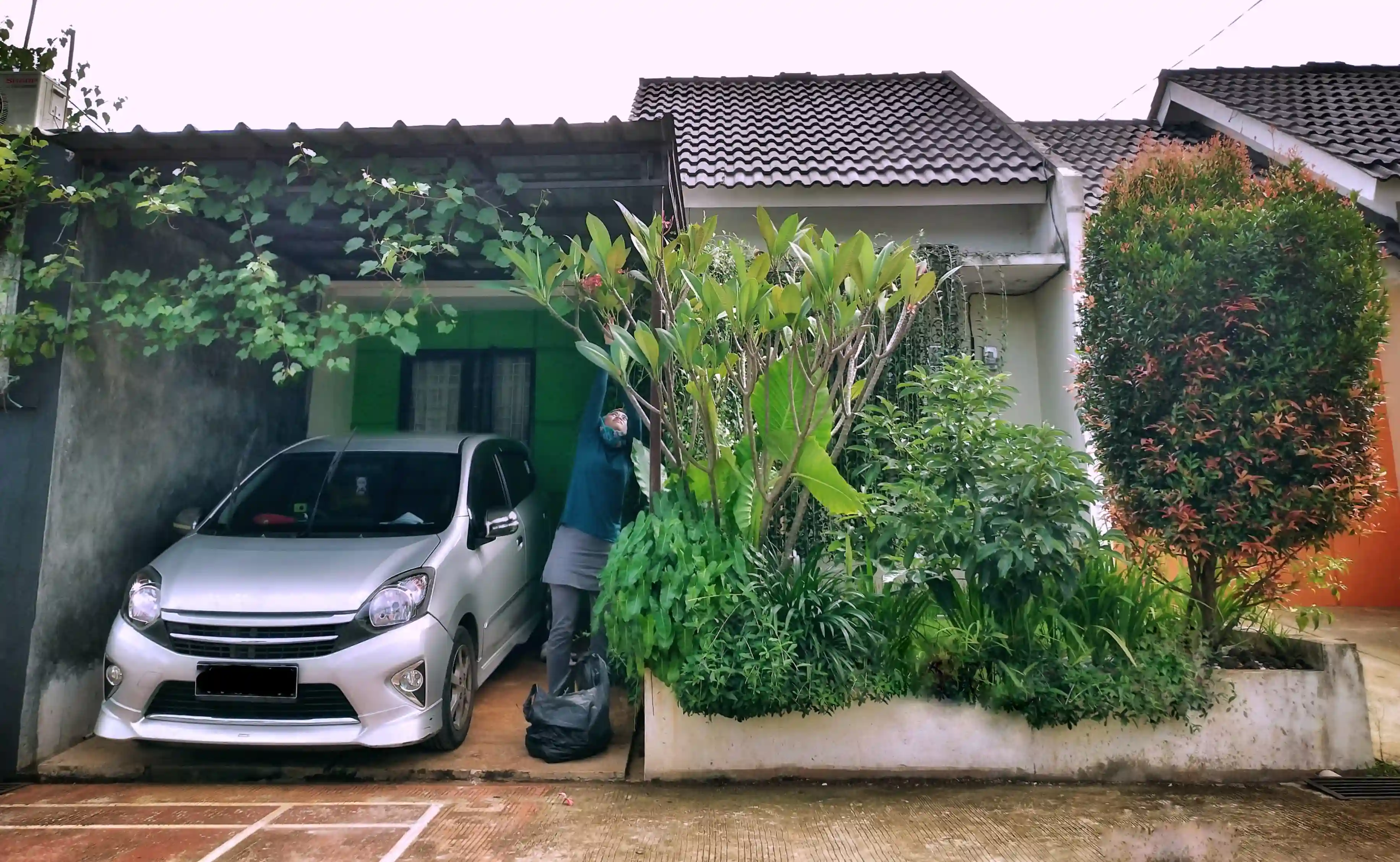 Car port dengan kanopi, teras, taman, ruang tamu, kamar tidur (2), kamar mandi dan dapur sudah renovasi luas.