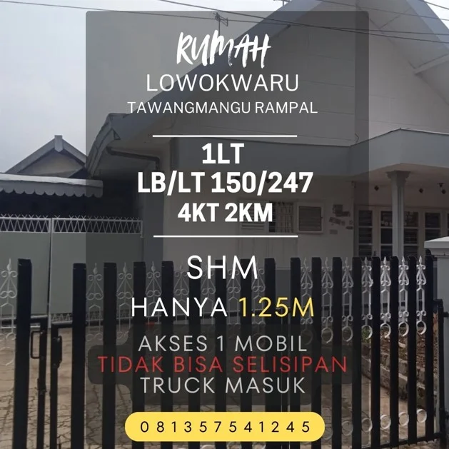 Rumah dijual di tawangmangu rampal LT250 4KT murah 1,25M akses 1mobil