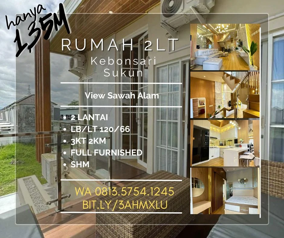 Rumah dijual kebonsari kemantren sukun samsat indogrosir 2lt 3KT furnished