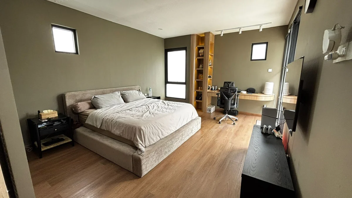 Semi-furnished (dapur, storage, walk-in closet, meja dan shelf kamar utama)