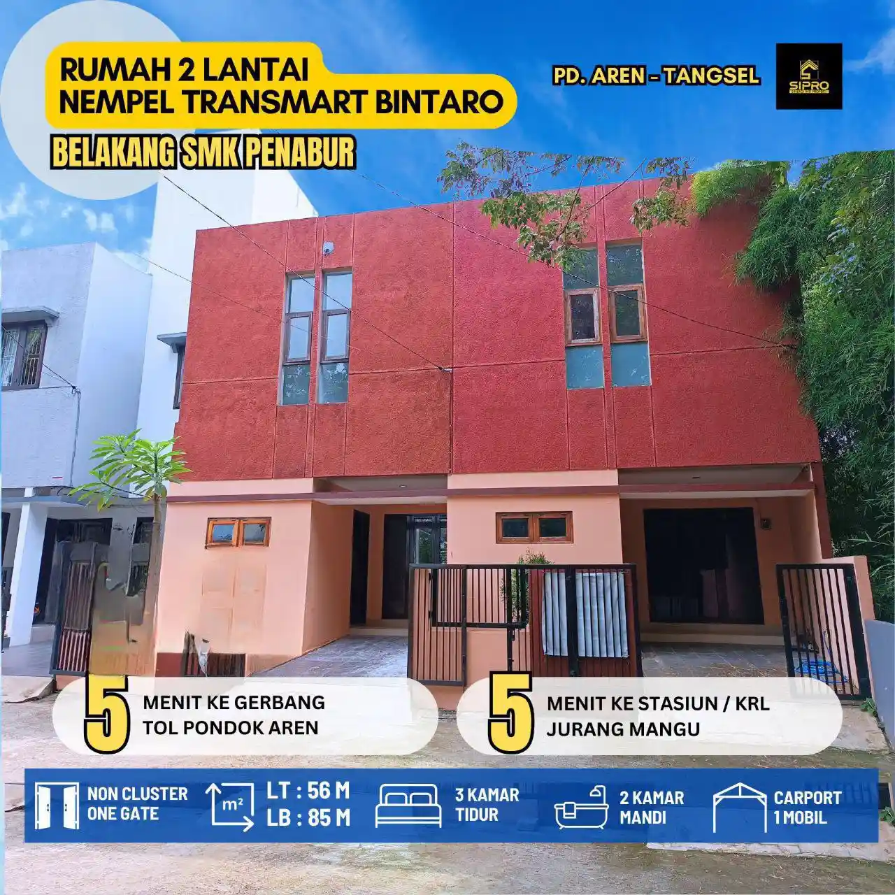 S706.Rumah 2lantai Akses 2Mobil Murah Nempel dgn Transmart Bintaro di Pondok Aren Tangsel
