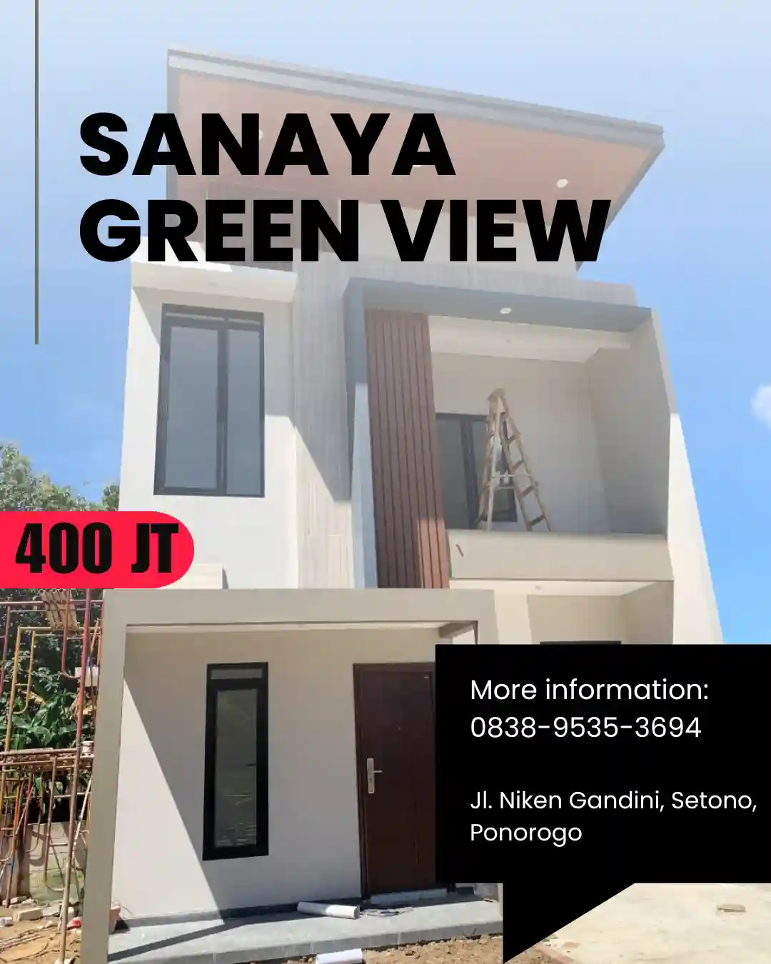 SANAYA GREEN VIEW memberikan kualitas hidup yang lebih baik bagi Anda dan keluarga. Lokasinya yang dekat kota memberikan efisiensi waktu, sementara lingkungannya yang tertata mendukung kehidupan yang tenang dan harmonis. Unit terakhir ini adalah kesempatan langka untuk mendapatkan hunian di kawasan yang sedang naik daun di Ponorogo.