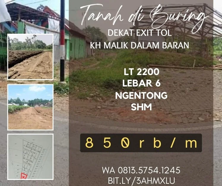 Tanah dijual buring baran citragarden Malik lt2200 GorKenarok 850rb/m