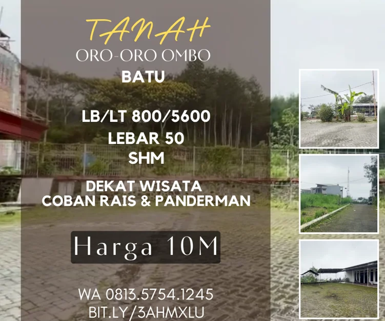 Tanah dijual di oro-oro ombo dresel Batu Lt5600 wisata coban rais 1,8jt/m